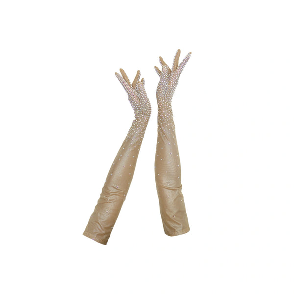 Made out of 4-way stretch holo dot spandex, 2-way stretch metallic mesh, and 4-way stretch velour.